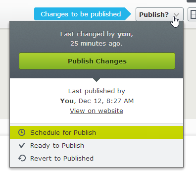 Once all desired changes have been made, the a notice in the top right will notify you that there are “Changes to be published.” From here, you have several options: