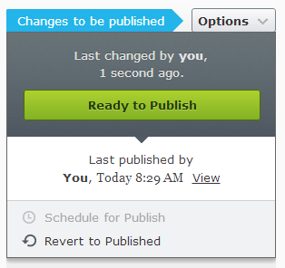 When content has been marked “Ready to Publish,” new options are available.