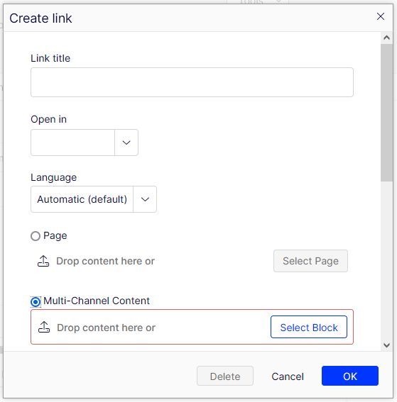 So the new task was to extend the hyperlink editor with a "Multi-channel content" selector.