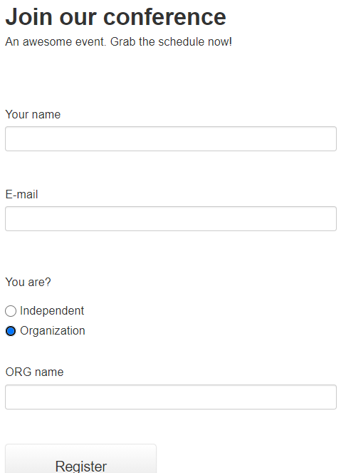 Time for testing! Let's create a simple form with type of FormInvitationBlock, for example: