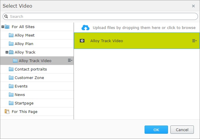 The new property can be also used to select other media types, for example, videos. To add a new video property, the "Video" UIHint can be used: