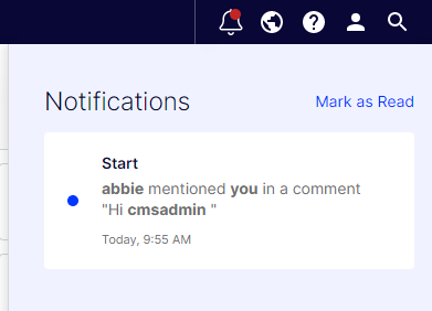 If you familiar with Using user notifications, I'm glad to introduce the new global notification UI. Notifications are moved to the navigation bar, so it is no longer only for the CMS UI.
