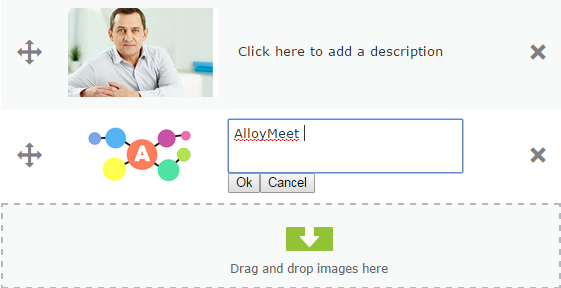 The Multiple Images property is easy to use. The editor can just drag images from the media archive into the property. The editor can then add a description and sort the images.