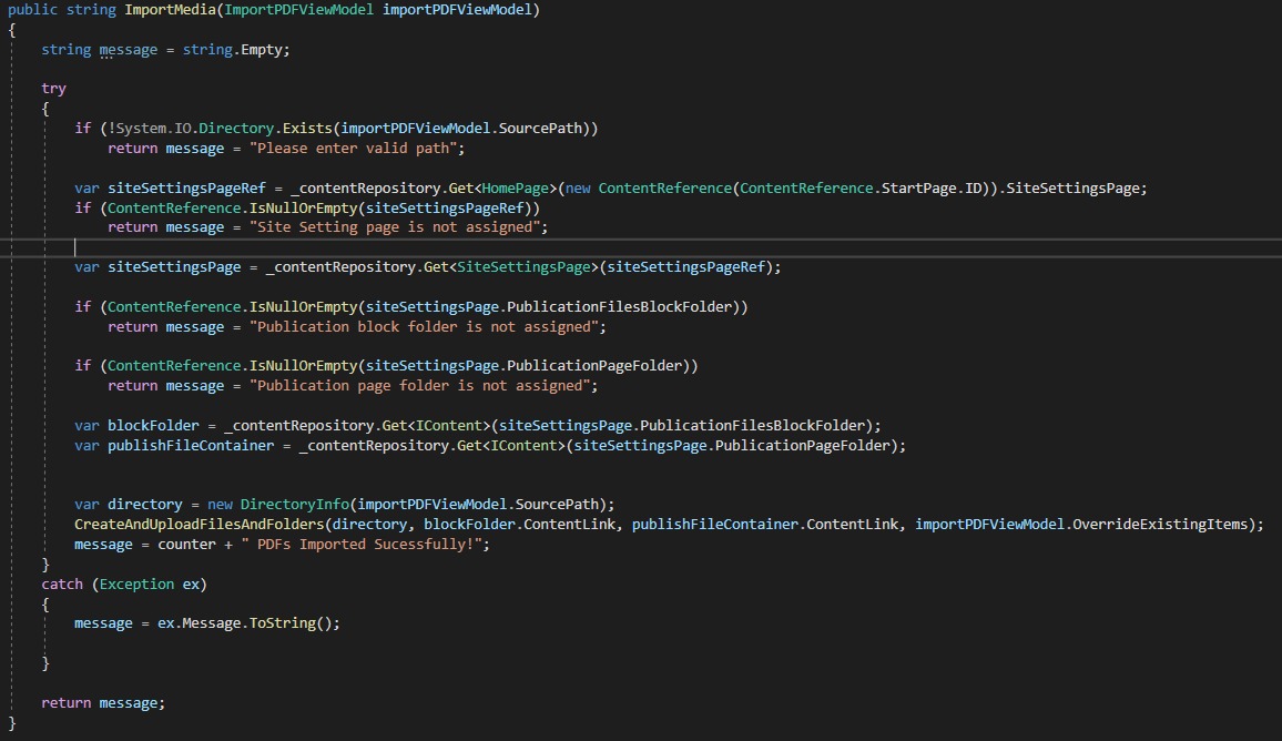 Recently I came across one of the requirement to import PDF documents from external drive and create respective publication pages in Episerver. I have divided this requirement into below tasks: