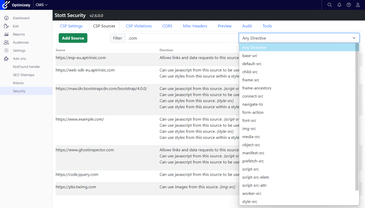 When I initially developed Stott Security, I didn’t foresee the sheer volume of sources that would be added to each site. It’s become apparent that some implementations contain upwards of 50 sources or more, making the list difficult to navigate. Additionally, the CSP Violation List can become overwhelming with potentially hundreds of violated sources.
