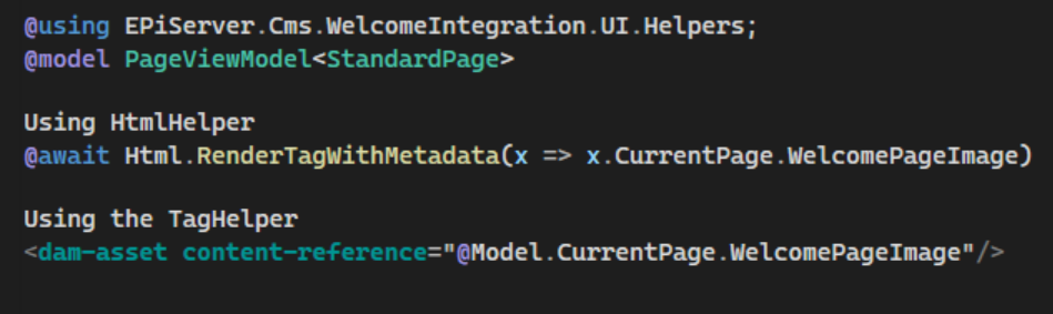 TagHelpercalledDAMAssetTagHelperwhich does the same thing as above, but is used a bit differently- To use it, first add the tag helper in your