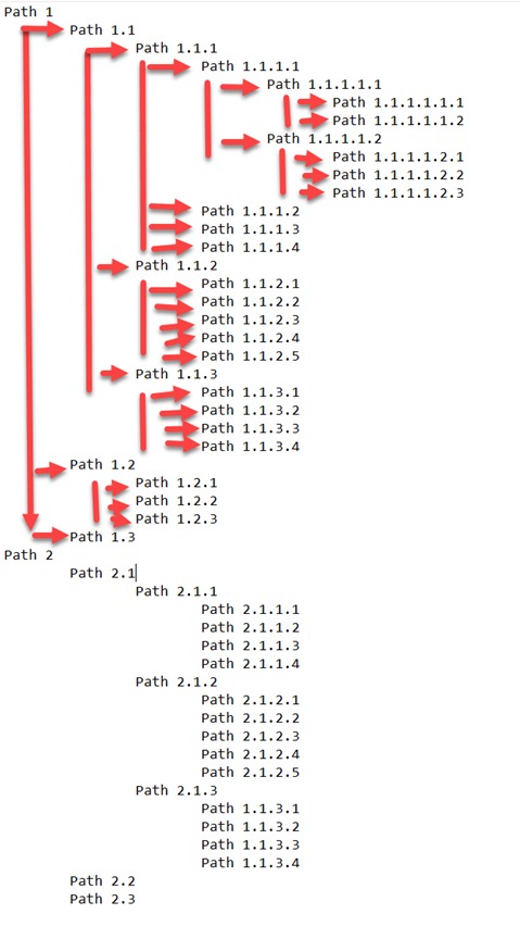 When the user clicks on Path 1, we provide them with options to choose from Path 1.1, path 1.2, and Path 1.3, and if they click on Path 1.1, they will be given options to choose Path 1.1.1, Path 1.1.2, Path 1.1.3, and so on.