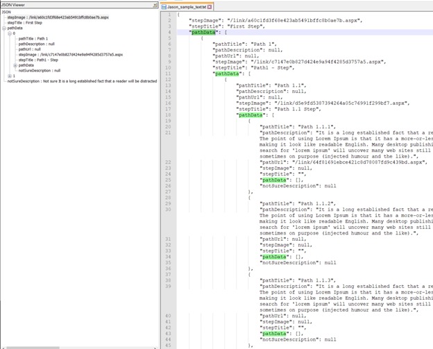 Each step is a JSON object, the Path data property from the step object is an array of more steps (nested JSON object).