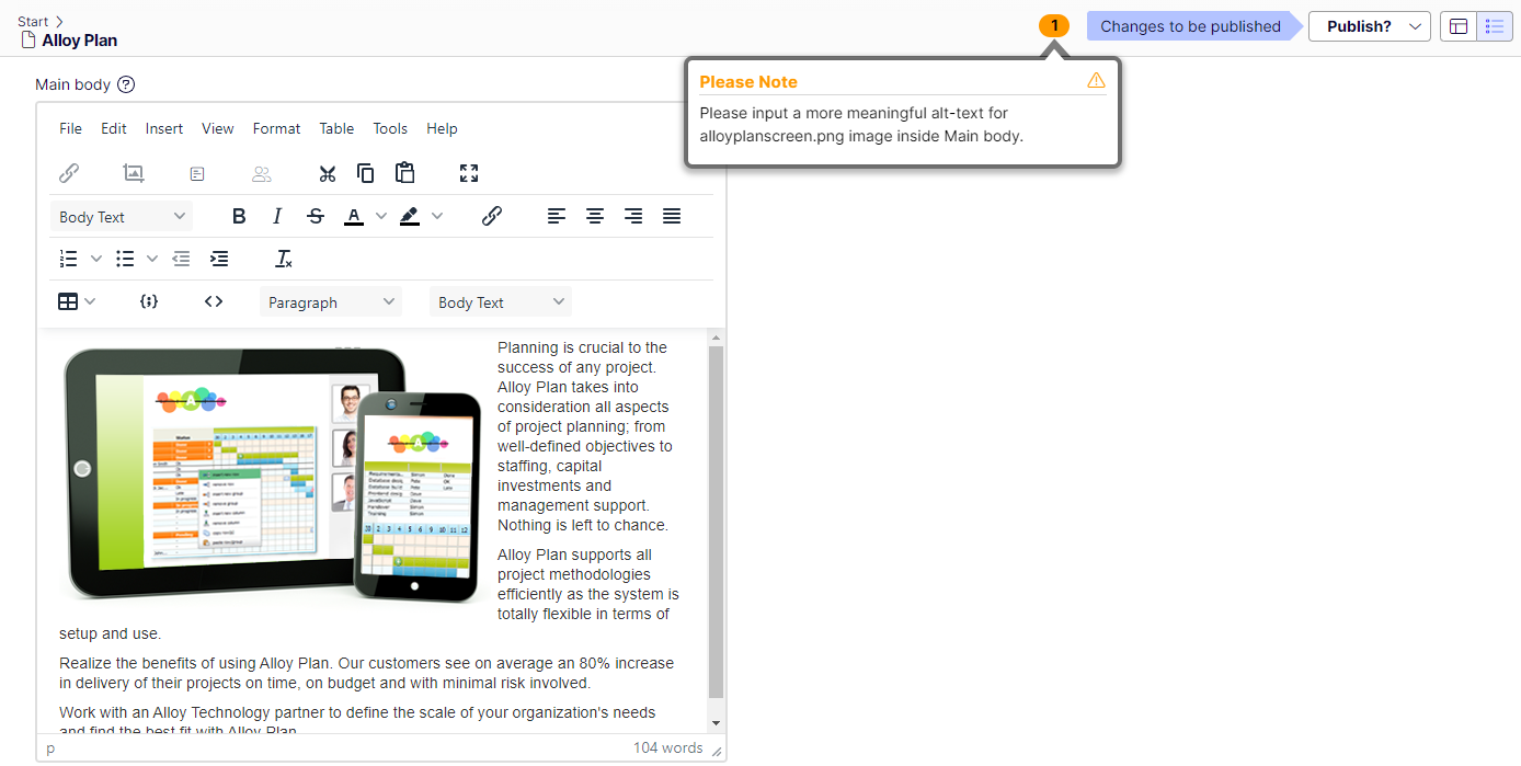 The basic editor currently only runs a simple alt-text validation which checks whether or not the image inserted into the editor contains any alternative text used for accessibility. With this new feature, users can now choose whether or not they want to disable validation from happening.