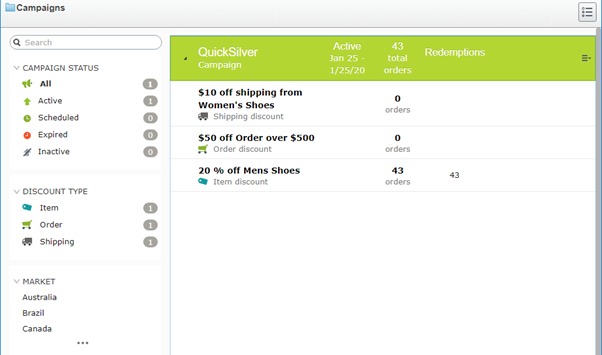 The marketing view has been built from the ground up to create a really good interface for managing campaigns and discounts for items, orders and shipping.