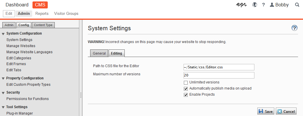 To change the Content CSS Path setting, do the following: