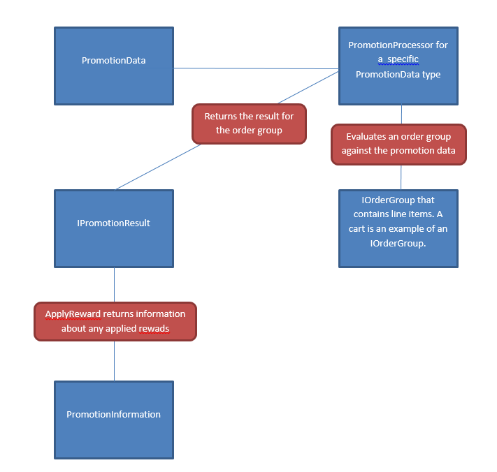 - An ApplyReward method that applies the reward to an IOrderGroup and returns a list of PromotionInformation that describes any applied rewards.