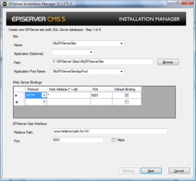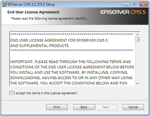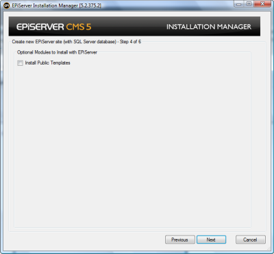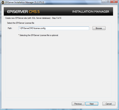 One of the major new features in EPiServer CMS 5 R2 release is the installer. If during EPiServer CMS installation Microsoft Windows Powershell is not found on the target machine then the EPiServer CMS installer will install it as part of the installation process. EPiServer Shared Components will be installed as well as database and Web site creation - if opted for. When performing a first installation the followling steps should be carried out: