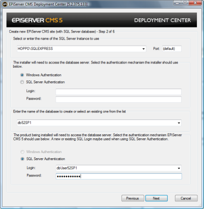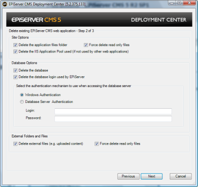 Choose this option to upgrade your Web site and database from EPiServer CMS 5 R2 SP1 to EPiServer CMS 5 R2 SP2.