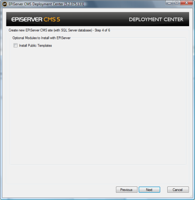 Choosing this option imports the EPiServer CMS Public Templates.