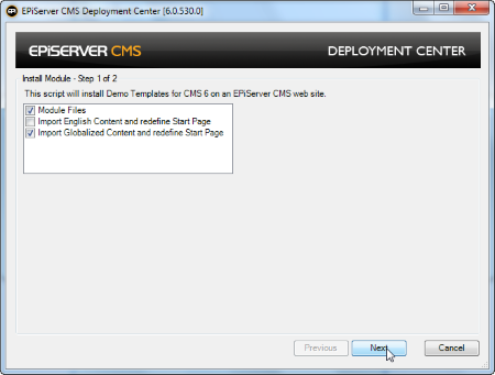 This document describes the necessary steps to install the demo site for EPiServer CMS 6. When installing the demo site you can use the EPiServer CMS Deployment Center for an automated installation of the template files and content.