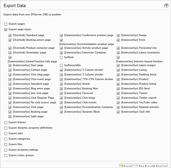 Figure 1 - Exporting all page types