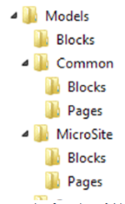 Pages and blocks are by default placed in separate namespaces and folders. Types with a name using the de facto group naming standard, for instance "[Group] Name", will be placed in a separate namespace/folder named after the group name.