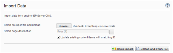 Before importing your content package, make sure that your solution is fully deployed, including visitor groups, content types, custom properties and dynamic content definitions.