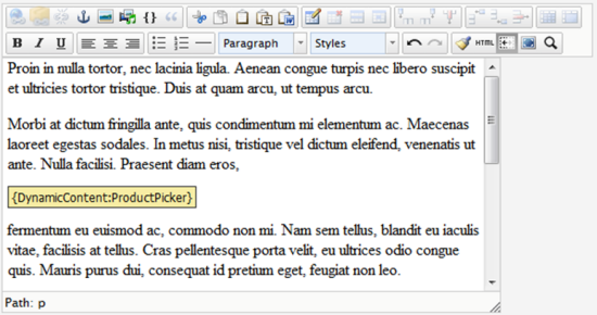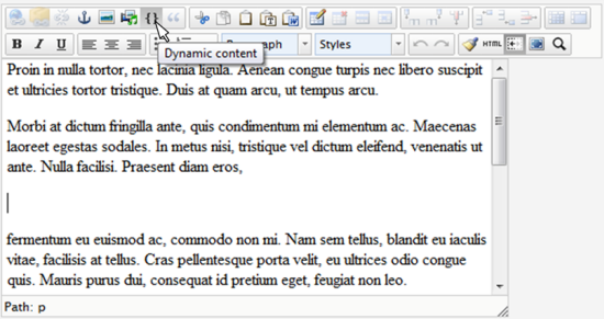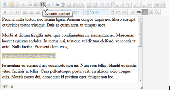 To insert product information using dynamic content, click the Dynamic content tool in the toolbar in Edit mode.