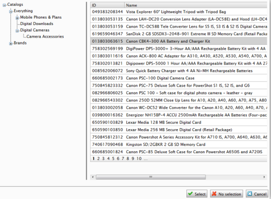 Select a product you want to display information for, and then click Select.