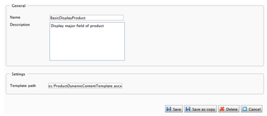In the Property Setting pop-up, enter Name, Description and Template path. Template path is the path to the user control that implements the display product function.