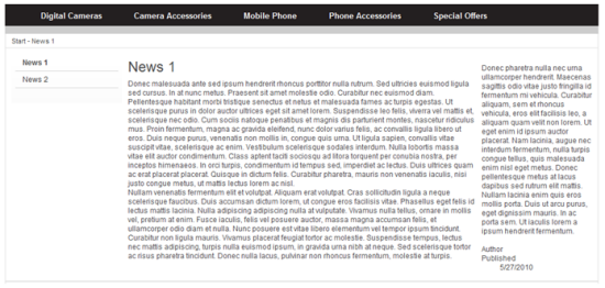 This is an example of a news page before adding product information using the product picker property.