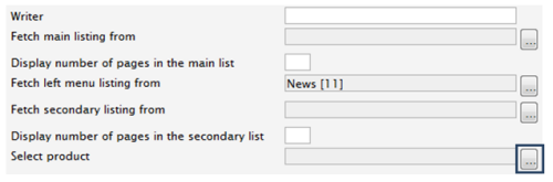In Edit mode, open the desired page for editing, then enter product information in the Select product field by clicking the browse button.