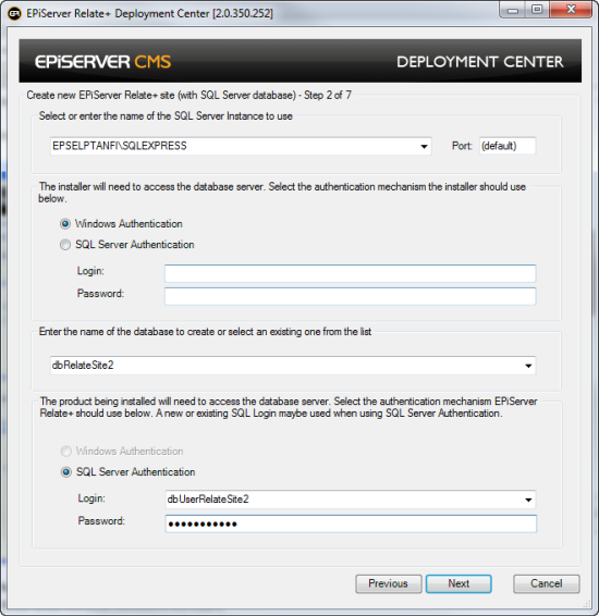 - If you want to use the same database you should first create a backup of it. Then select the existing CMS site's database from the dropdown and input the SQL user's name and password which can be found in the connectionStrings.config file of the existing CMS site.