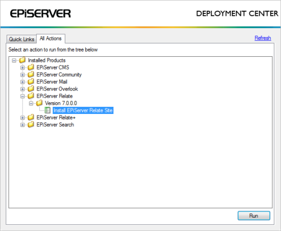 2. Select Install EPiServer Relate Site and click Run to start the installation.