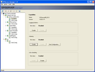 1. Select the Capabilities node under the Web site for which you want to generate log messages.
