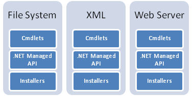 The .NET Managed API is a collection of classes, one for each of the functionality areas, plus a controller class. These classes create and initialize one or more installers for the task they are asked to do and pass them off to the controller for transacted execution.
