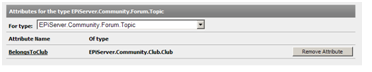 Add or delete Attributes for different object types by selecting the community tab (EPiServer CMS edit mode) and clicking on Attributes: