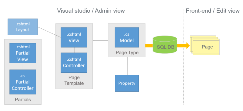 CMS has built-in template support for ASP.NET Core MVC and Razor pages which will be covered in this section. CMS can, however, also be used by other rendering techniques such as client-side rendering frameworks.