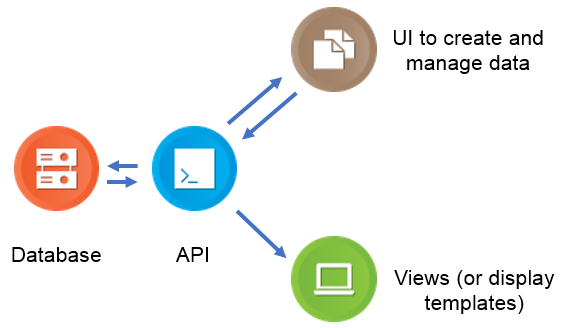 In a traditional CMS you have four corner stones; the database, the API, the user interface and the views.