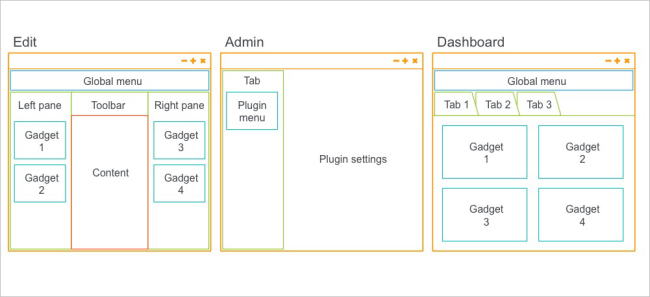 The user interface in Optimizely is component-based and pluggable, and the UI framework is used across platform parts. The user interface has support for drag-and-drop (DND) functionality based on the DND system in Dojo, and extendable navigation for easy access to customized modules from the top global menu. The user interface also has support for Dojo Toolkit including Dijit for widgets and jQuery.