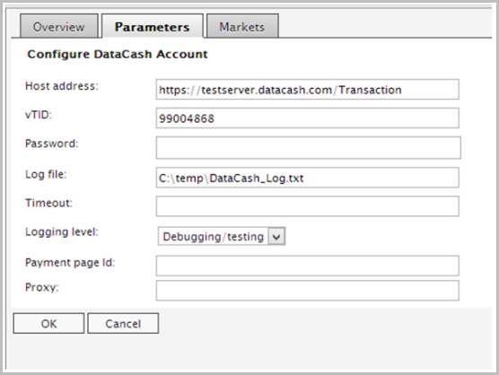 - Open the DataCash payment that you just created and go to the Parameters tab.