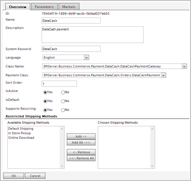 The DataCash payment provider is one of several payment solutions available for Episerver Commerce.