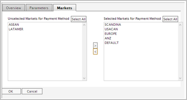 - Click the Markets tab and add the expected markets for this payment.