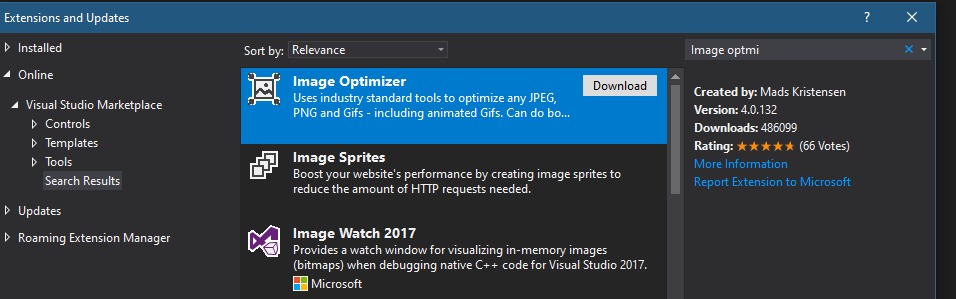 https://marketplace.visualstudio.com/items?itemName=MadsKristensen.ImageOptimizer