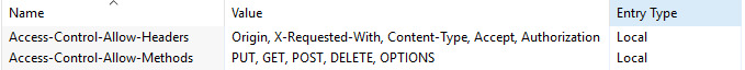 Add following values to allow CORS (Cross-origin resource sharing).