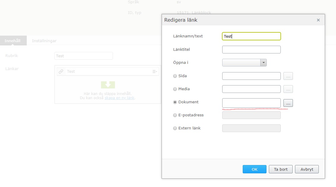 I can create a link and it's saved and displayed fine. When I'm in edit mode and trying to edit the link it's gone. If I cancel it's still there.