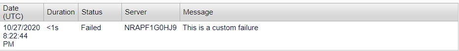 Is there a way I can pass back a message from a job execution that will show up a "failure" message manually? There is a failure condition that I want to pass back in a certain situation, but I'm only aware of passing back a success message for a ScheduledJobBase job execute override. Is there a text lookup for the start of that string that would allow me to designate a failure?