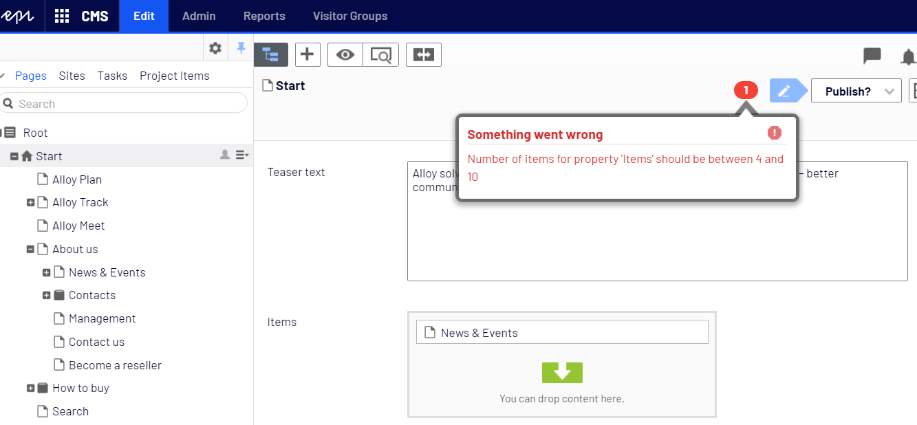 Hi Sander, I have cross-verified the same validation rules in the alloy sample project and I got an error when we cross the range between 4 to 10 and also getting the error when trying to publish the block with 0 items after creating.