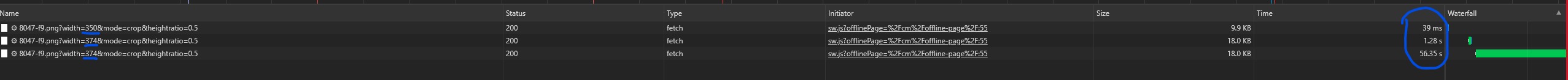 2 - After I manually change the Width to something new. 374 has not been used before and therefor the request takes a bit longer as noticed.