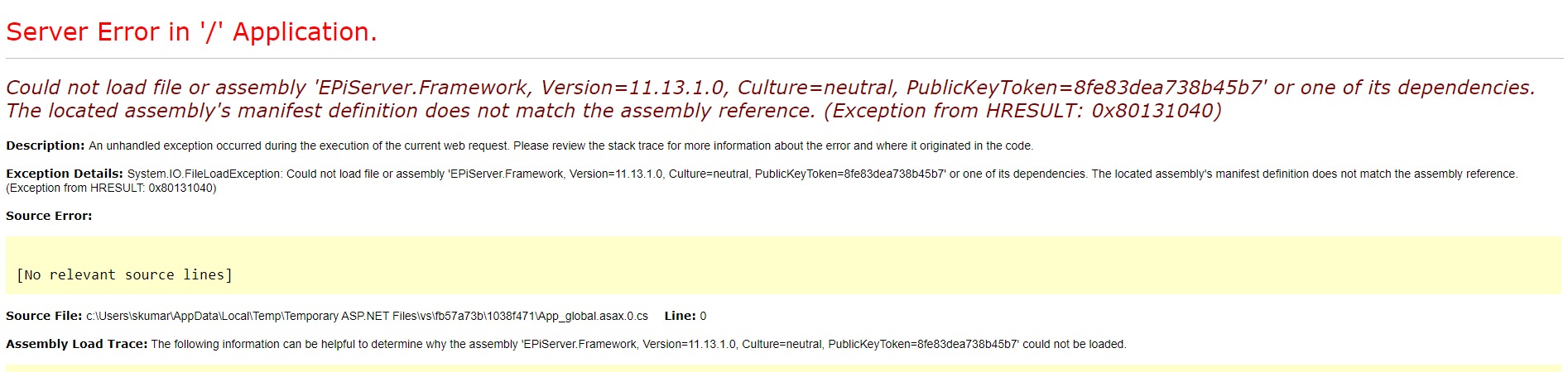 • Ensuring that the assembly redirect binding (in web.config) is correct and covers the required version.