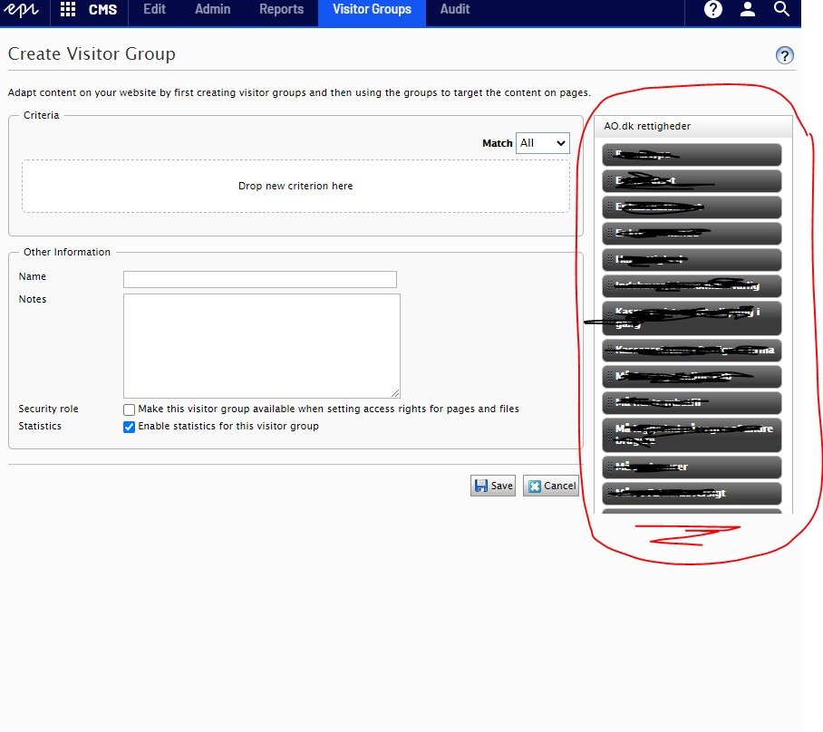 Which, when we do it directly through Developer Tools, appears to solve the issue. However, as mentioned, getting this custom styling into the Visitor Groups dashboard has proven troublesome. The documentation (https://world.episerver.com/documentation/developer-guides/CMS/client-resources/) doesn't seem to make any mention of the "Admin" or "Visitor groups" parts of the dashboard, and the other people asking the same question online go without an answer, e.g.: