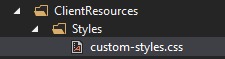 <?xml version="1.0" encoding="utf-8"?><module> <clientResources> <add name="navigation" path="Styles/custom-styles.css" resourceType="Style" /> </clientResources></module>Created a "ClientResources" folder in the root (same root as the above 'module.config') with a "Styles" subfolder containing the .css file