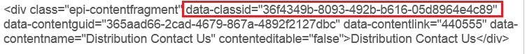 But I'm not sure, how/where I can access or get the value of data-classid="xxxxxxxx-xx..." , Can anyone suggest how I can get the GUID value of data-classid from IContent.
