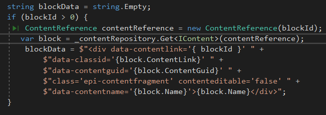 var fragment = contentFragmentFactory.CreateContentFragment(content.ContentLink, content.ContentGuid, securedFragmentMarkupGeneratorFactory.CreateSecuredFragmentMarkupGenerator());'